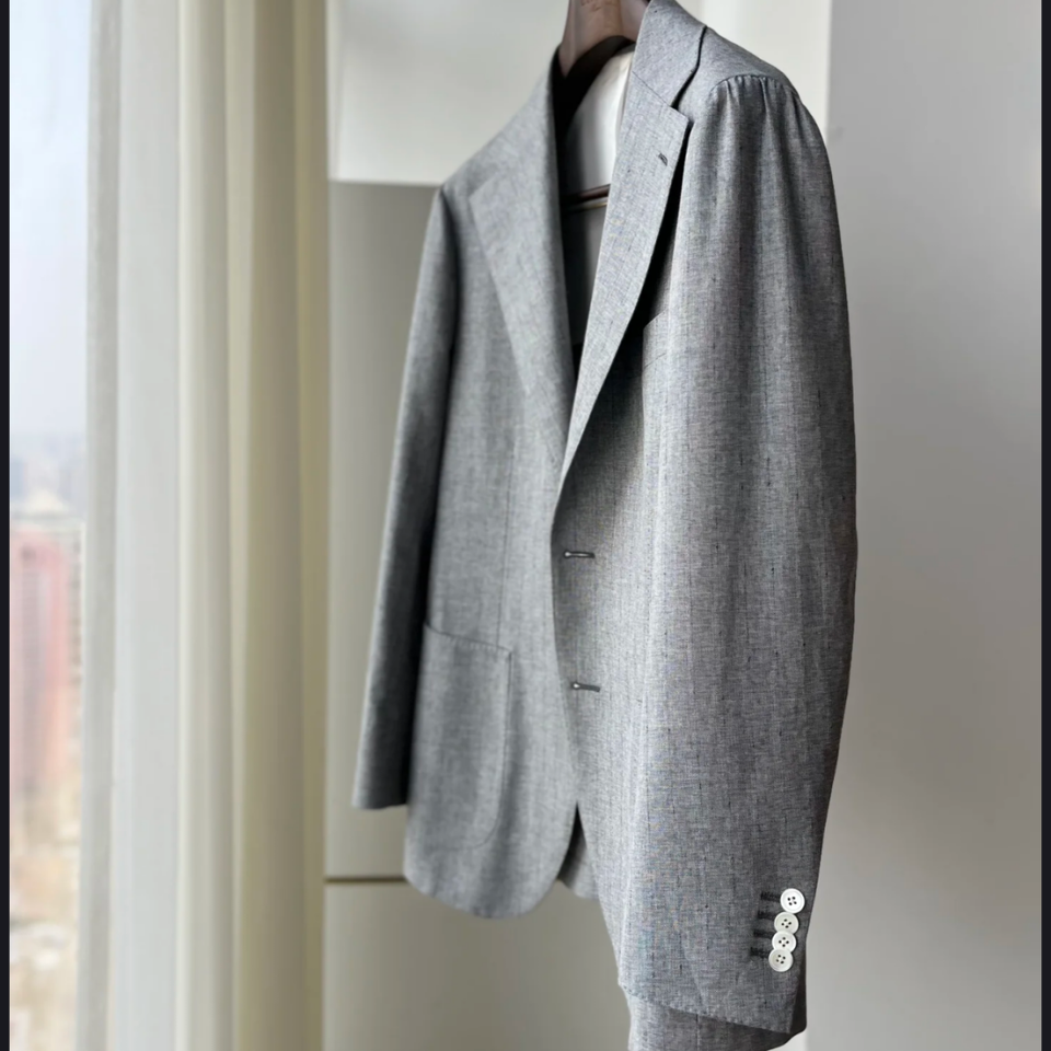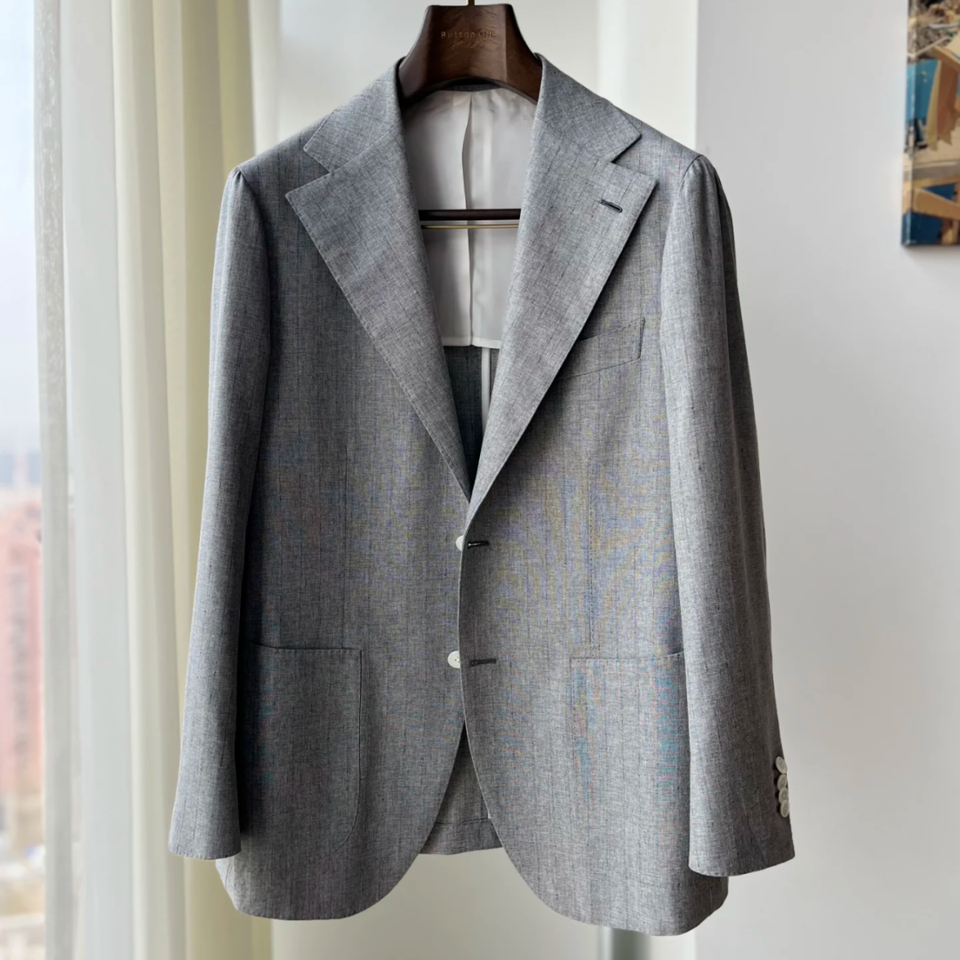 Blazer gris en laine et lin pour homme, veste italienne VBC à simple boutonnage, respirante, infroissable, de luxe, pour affaires, décontractée, ou mariage