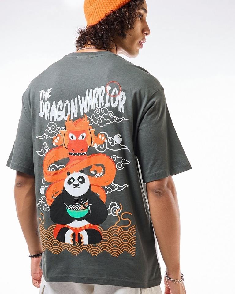 T-shirt oversize imprimé graphique The Dragon Warrior gris pour homme respirant fabriqué au Pakistan