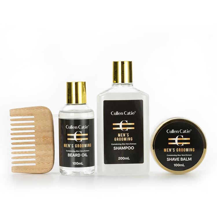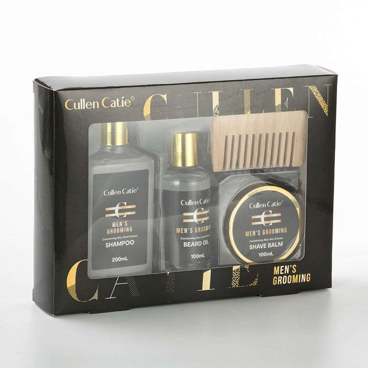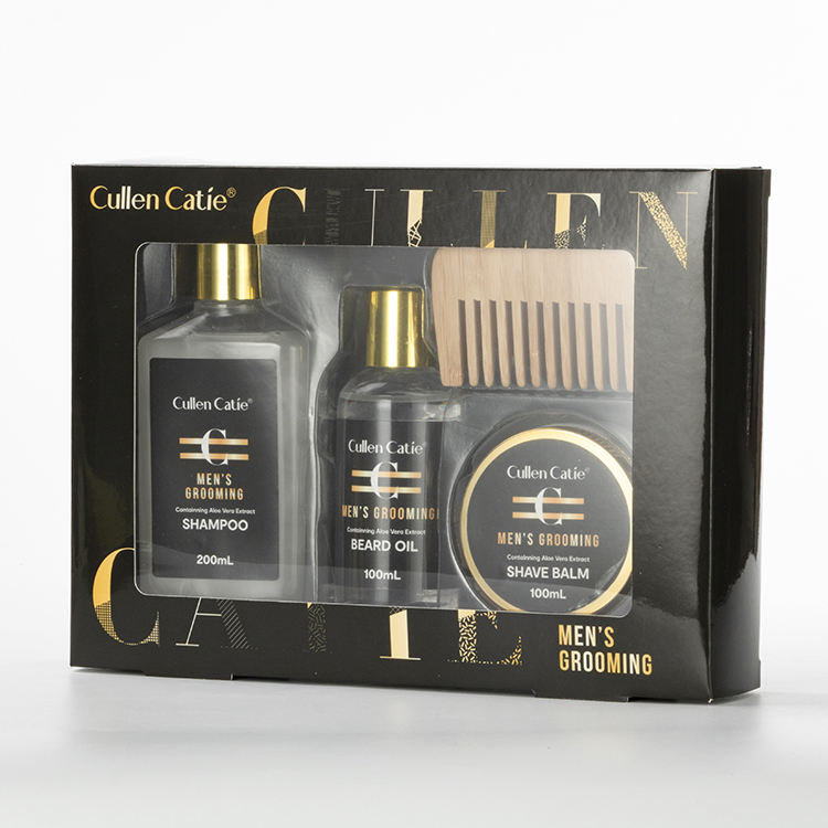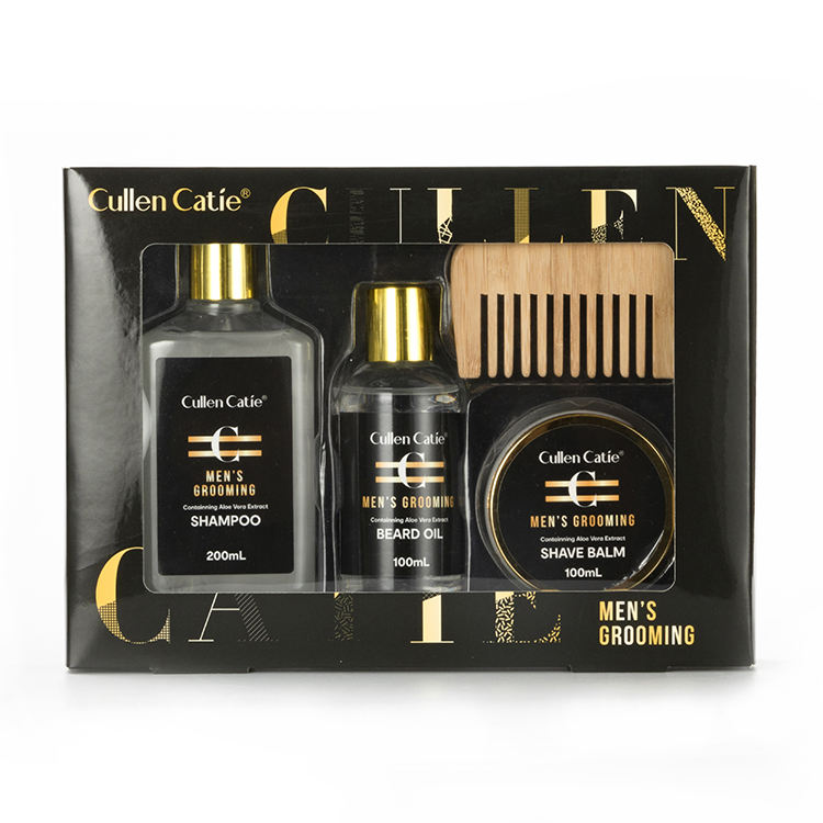 Ensemble de soins pour homme comprenant un baume à raser, une huile à barbe, un shampoing et une brosse, en coffret cadeau, spécialement conçu pour les hommes