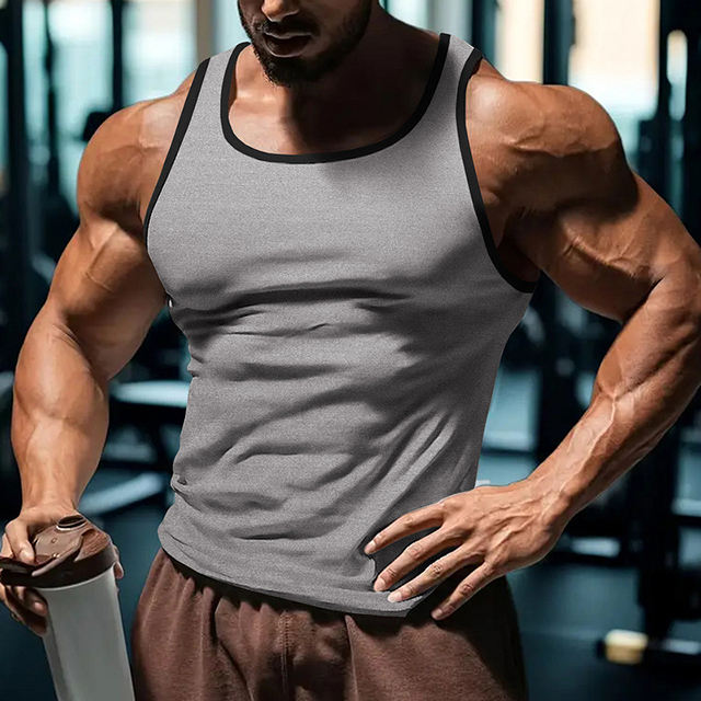 Débardeur de sport pour homme personnalisable avec logo, color block, côtelé épais, extensible, respirant, idéal pour l'été
