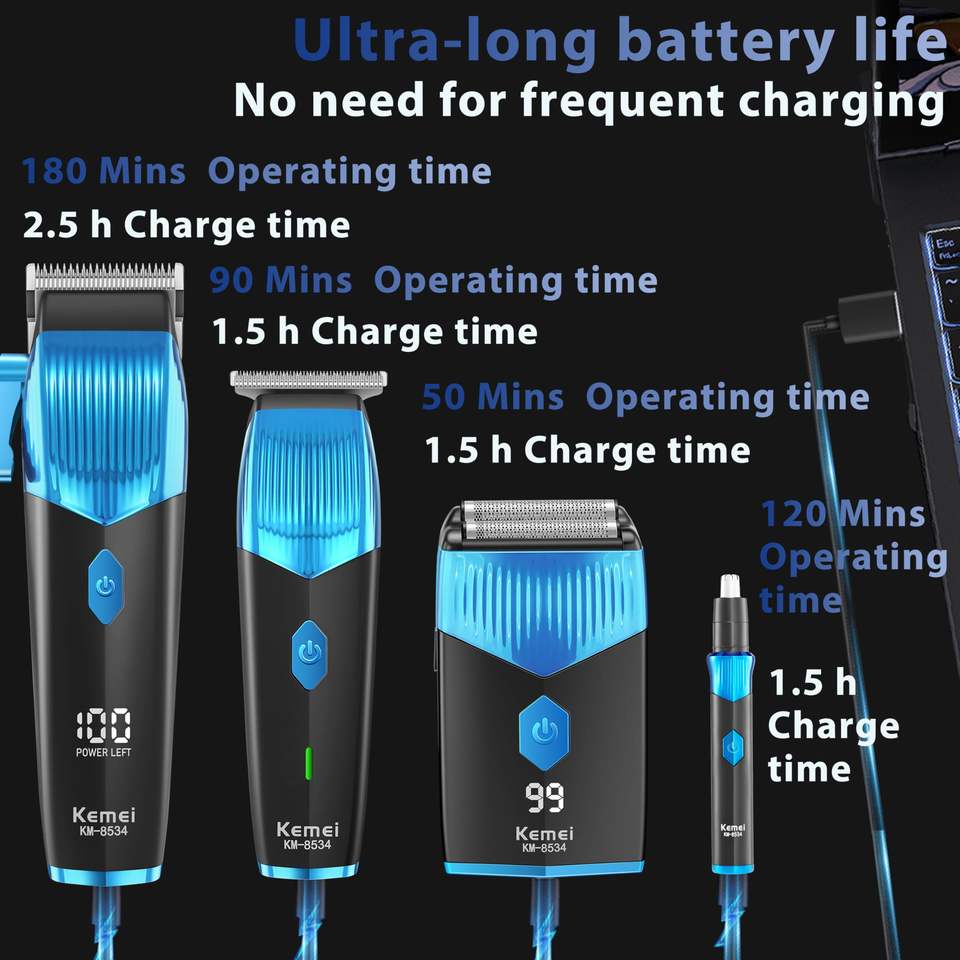 Tondeuse à Cheveux et Barbe pour Homme, Étanche IPX7, Alimentation USB, Écran LCD, Rasoir Électrique, Kit de Toilettage et de Coupe de Cheveux, Tondeuse Nez et Oreilles