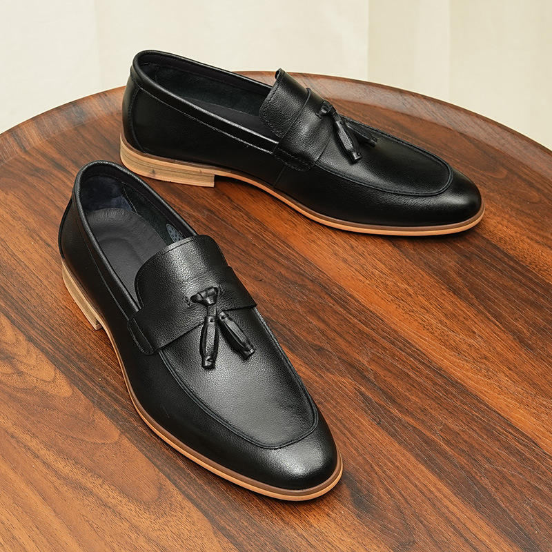 Chaussures de conduite en cuir véritable faites à la main pour hommes - Première couche de cuir de vache, décontractées à glands, mocassins tendance britanniques à enfiler