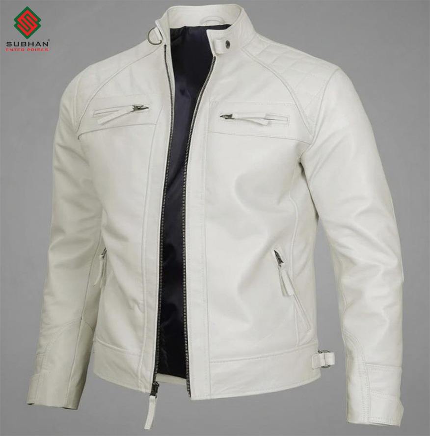 Blouson d'hiver décontracté pour homme en cuir synthétique fait main, style vintage motard avec col montant et fermeture éclair
