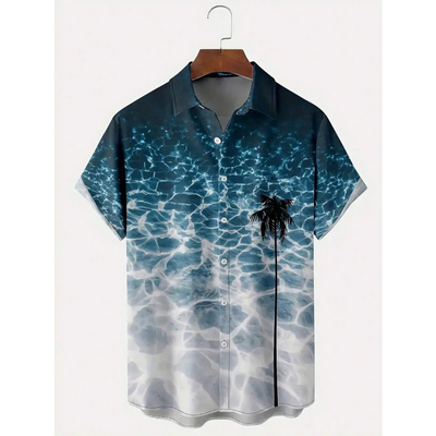 Men's Hawaiian Shirt Navy Blue Aloha Print Short Sleeve Button Down Shirt Casual Beach Vacation Summer Top