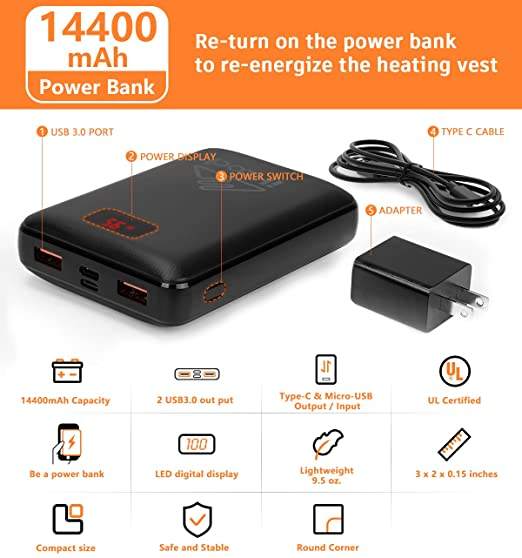 Veste chauffante rétractable pour homme, gilet léger avec capuche chauffante électrique, vêtements poids 14400mAh, batterie incluse