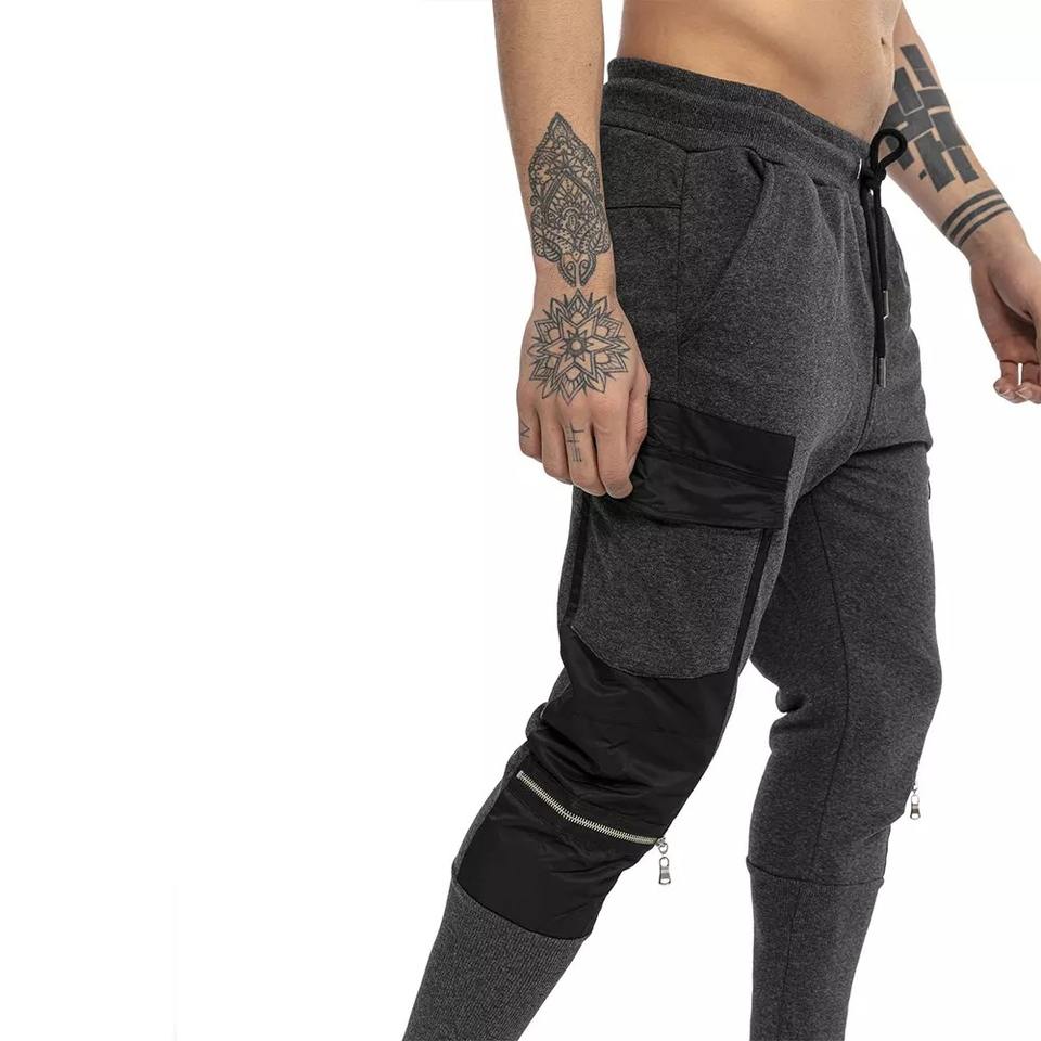 Pantalon de survêtement Cargo gris chiné pour hommes Patch noir Nouveau design Streetwear décontracté Joggers de sport à la mode Logo brodé personnalisable