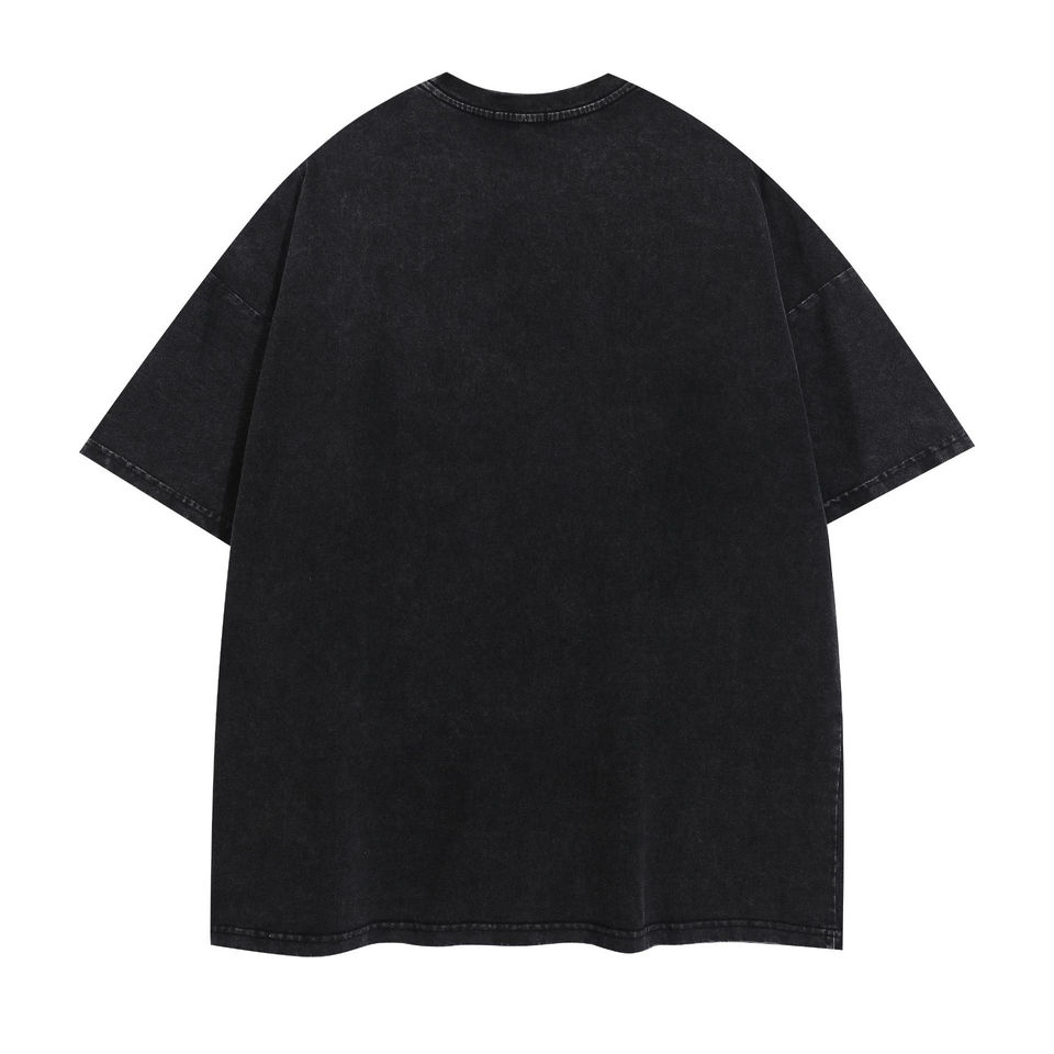 T-shirt d'été pour homme, coupe oversize, col en V, manches courtes, 100% coton tricoté, respirant, sérigraphié, effet délavé