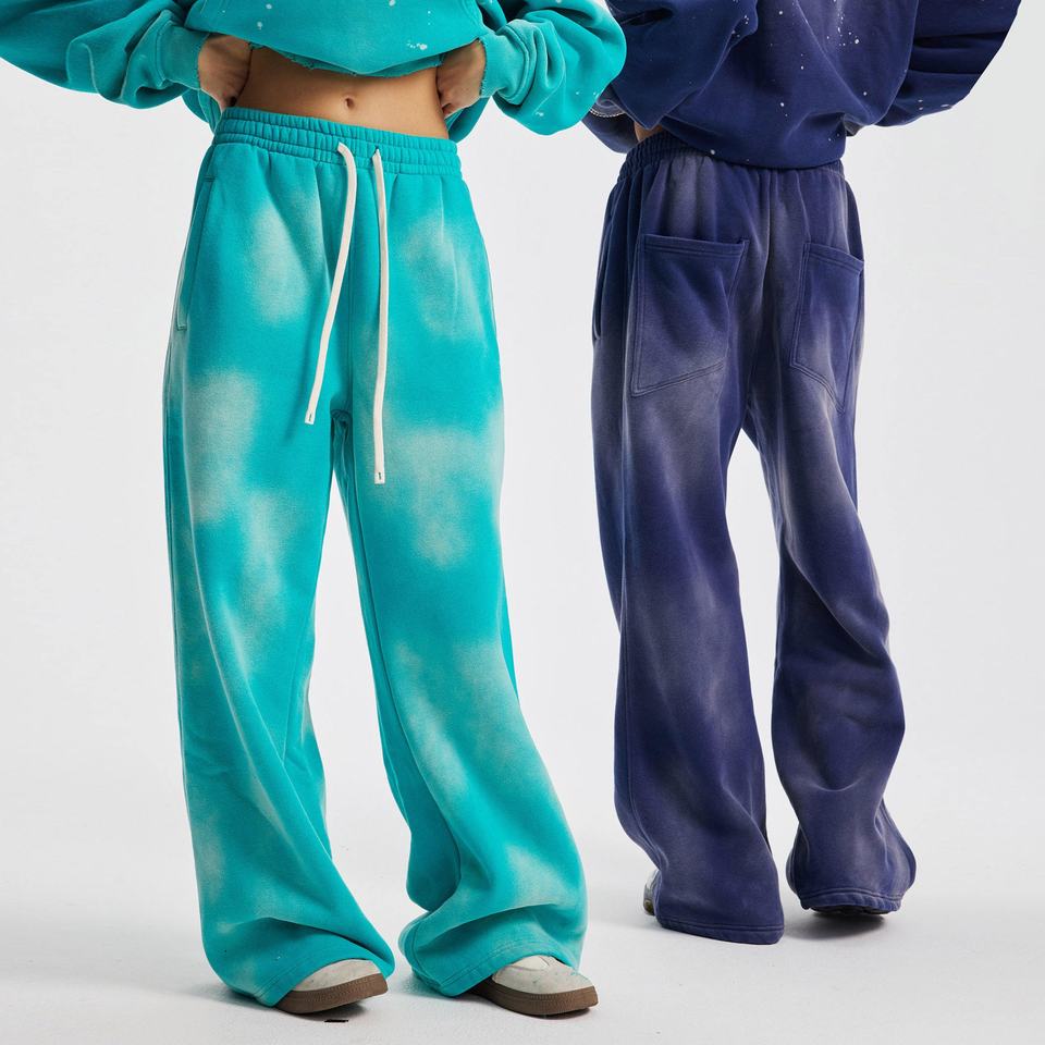 Pantalon de jogging pour homme, coupe ample, jambe large, taille élastique, couleur unie, style vintage, décontracté