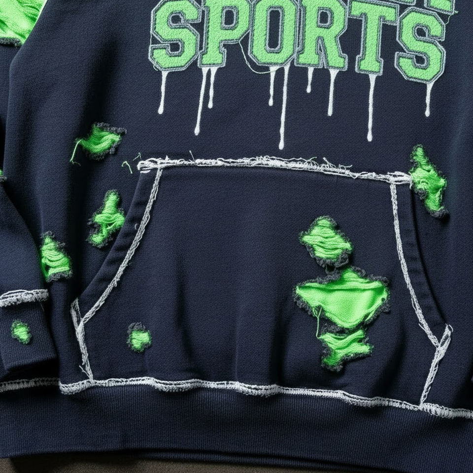 Nom du produit:Sweat à capuche brodé en détresse pour hommes