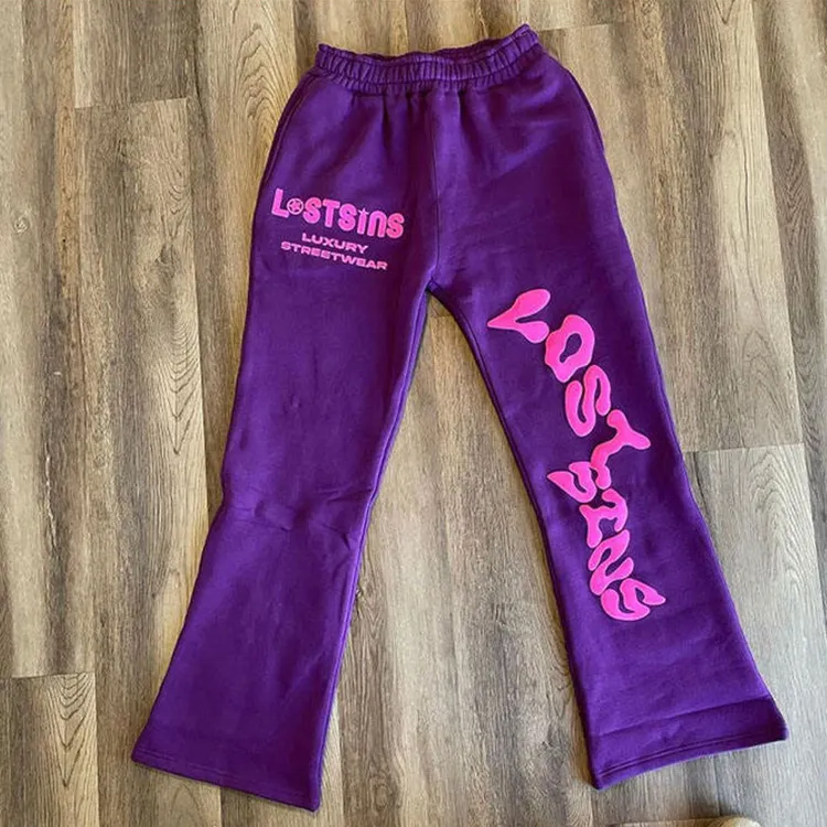 Pantalon de survêtement en molleton épais pour hommes 3D pour bouffée impression évasée conception personnalisée en détresse garçons taille haute le plus vendu OEM