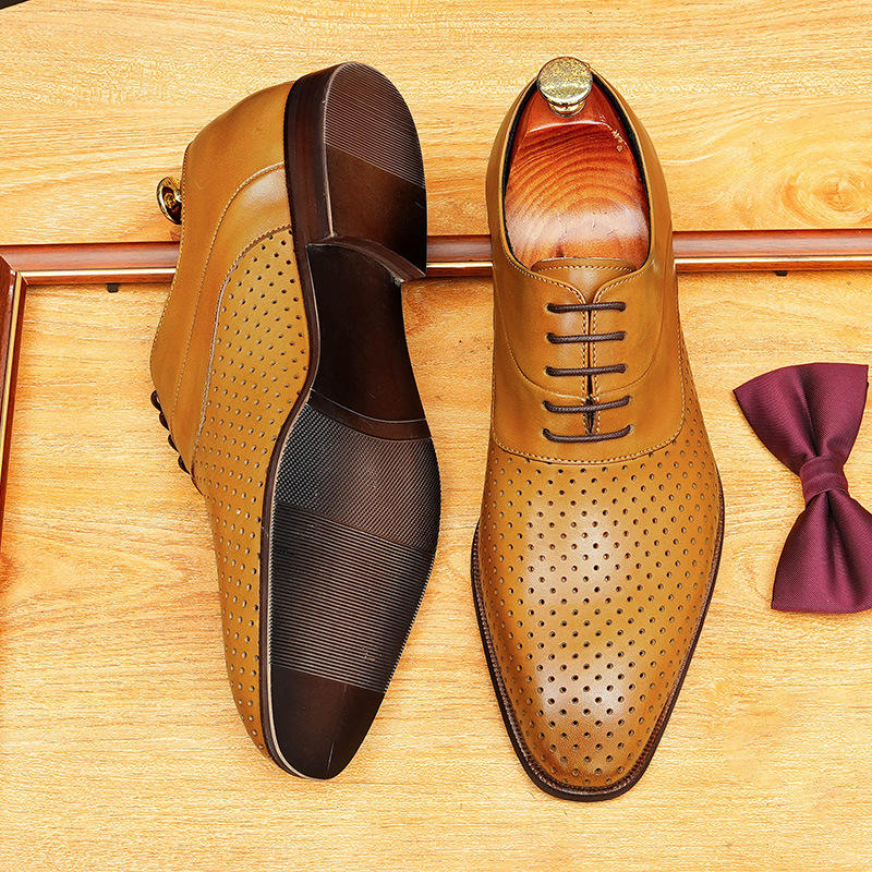 Chaussures en cuir pour hommes augmentant la taille, chaussures derby respirantes de style britannique, chaussures décontractées pour hommes, chaussures de mariage