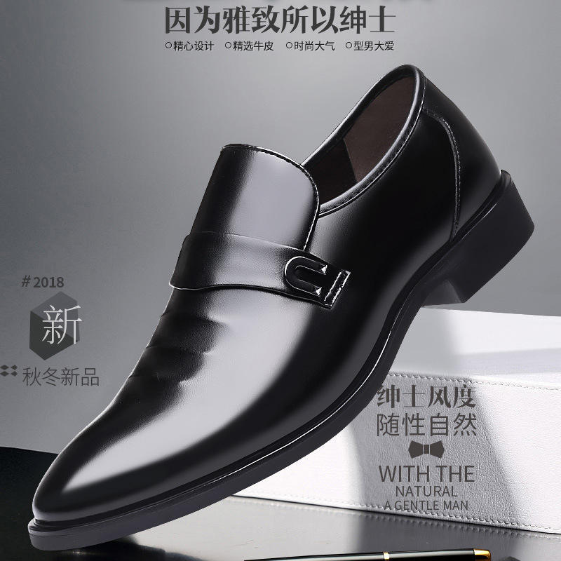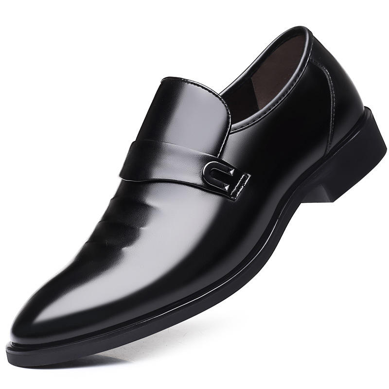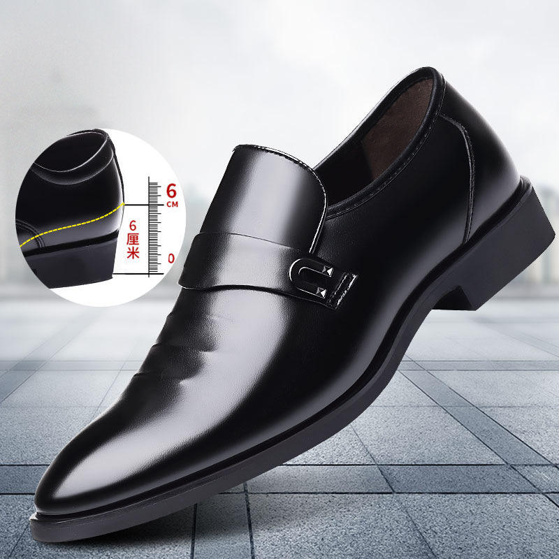 Chaussures en cuir à bout pointu pour hommes, noires, formelles, décontractées, talon de 6 cm, chaussures pour hommes