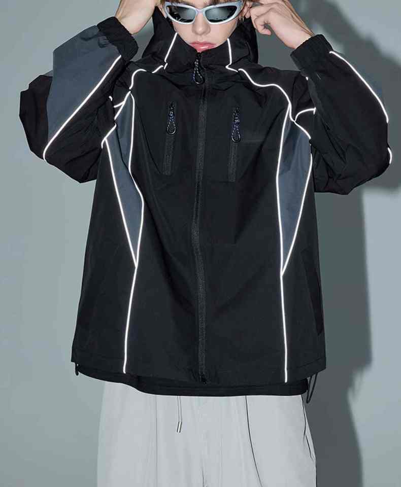 Vestes souples à réflecteur haute visibilité pour hommes pour le travail et les sports d'hiver Manteau longue longueur imperméable à motif de lettres pour la randonnée en plein air