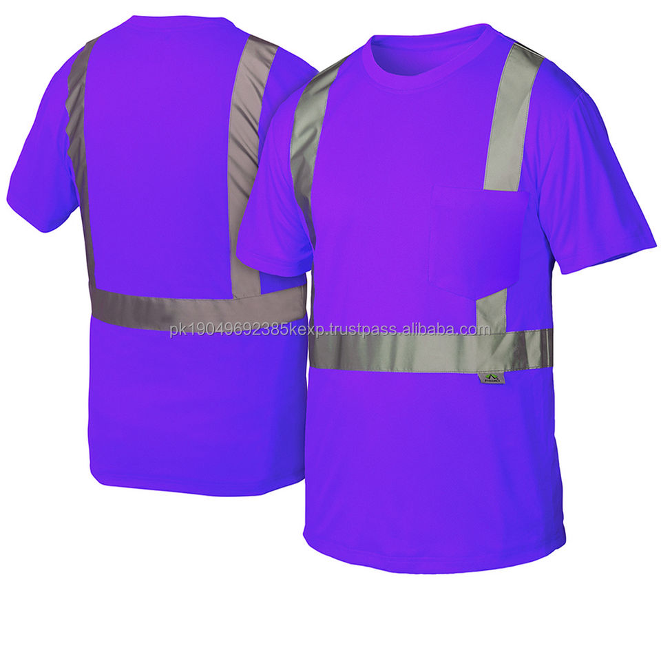 T-shirt de travail à manches courtes jaune haute visibilité pour homme, vêtement de sécurité réfléchissant, bande haute visibilité, tricot uni