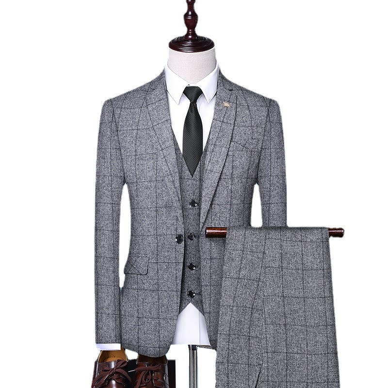 Ensemble 3 pièces haut de gamme pour homme Veste de costume en laine respirante Pantalon ajusté Gilet à carreaux pour mariage, banquets et affaires