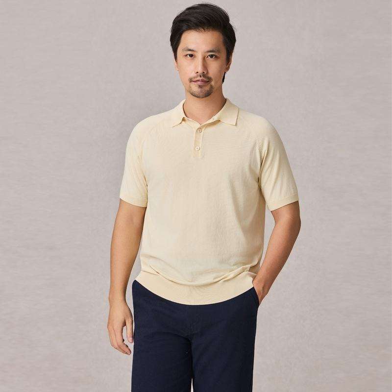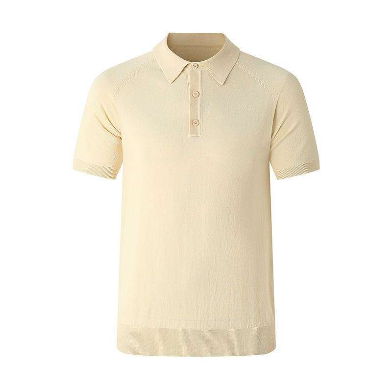 Men's High-End Summer Casual Business Jersey for Polo Shirt Simple Solid Color Anti-Pilling Light Mature Style 'Old Knitting