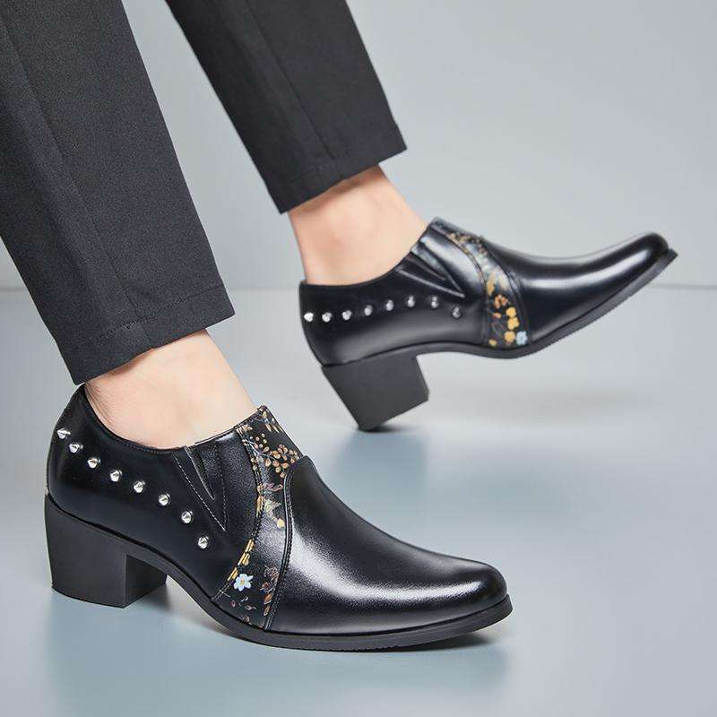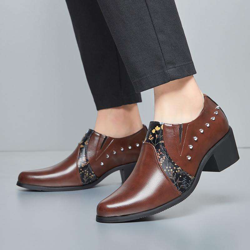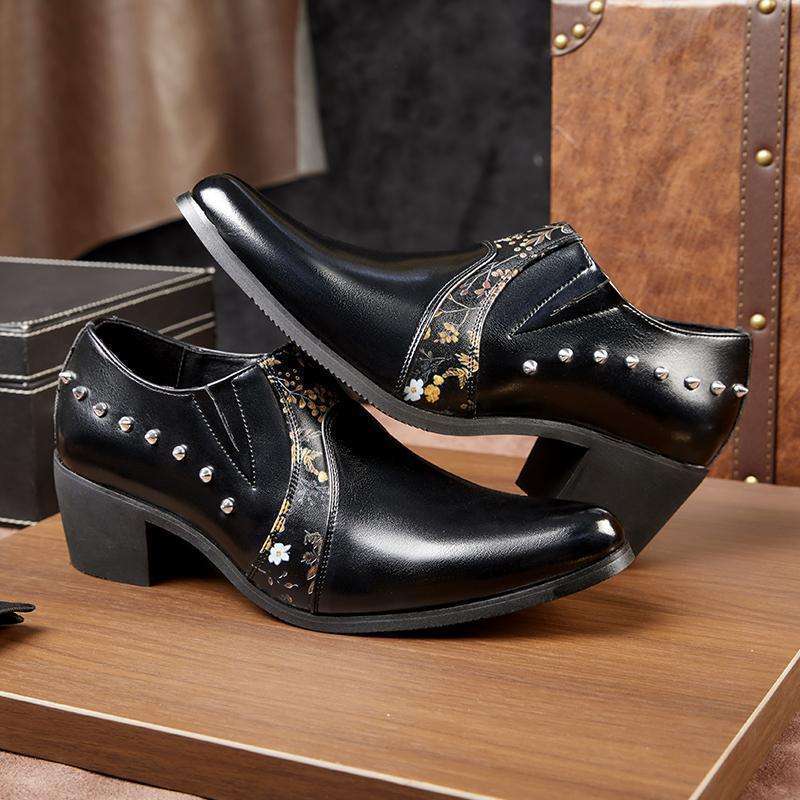 Chaussures habillées pour hommes à talon cubain et rivets, style rétro, à bout pointu, rehaussantes, pour affaires et occasions décontractées
