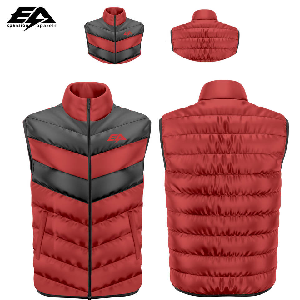 Veste bouffante sans manches en polyester 100% de haute qualité pour hommes, gilet en tissu tissé lavable, col montant, caractéristiques légères à capuche
