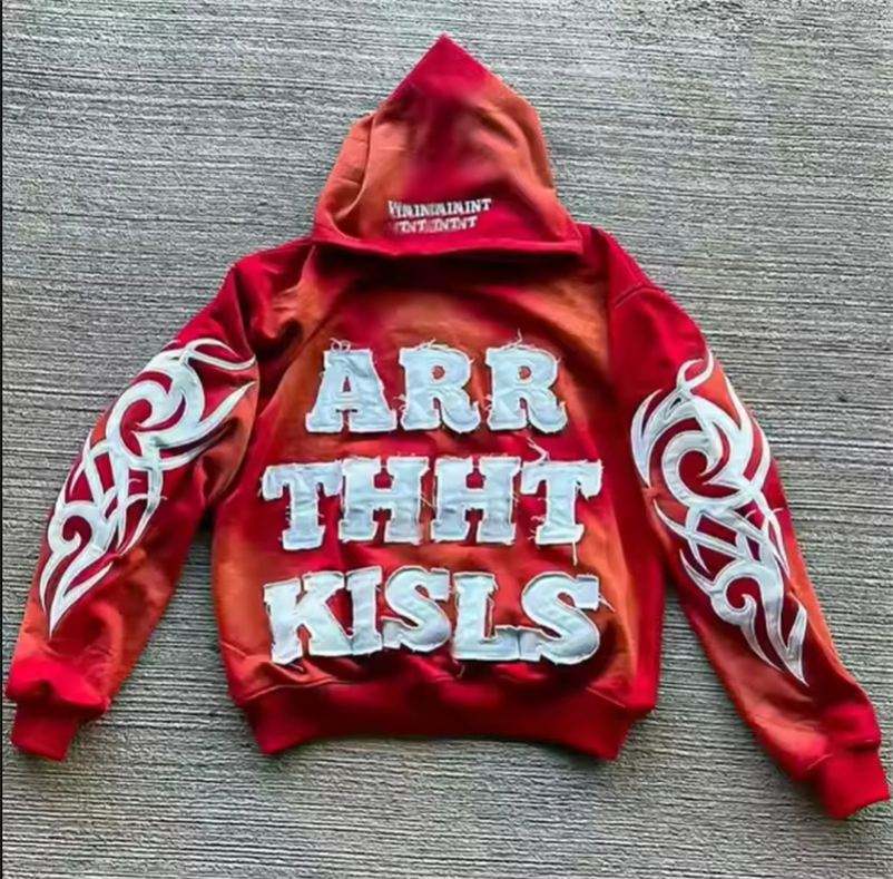 Sweat à capuche délavé à l'acide et pantalon évasé pour hommes de haute qualité Streetwear délavé au soleil avec col à capuche brodé en fausse patché