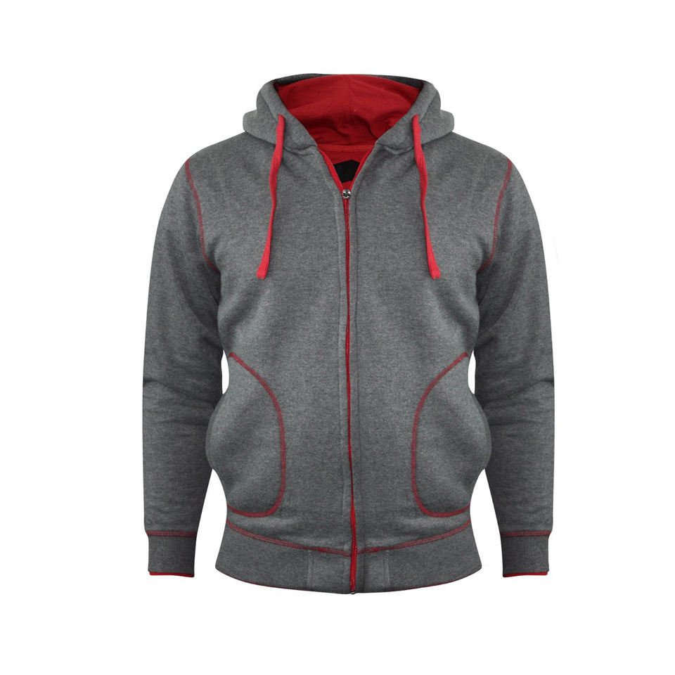 Ensemble de vêtements de sport en coton de haute qualité pour hommes, sweat à capuche zippé avec doublure en polaire rouge gris foncé, broderie de logo personnalisé pour l'hiver