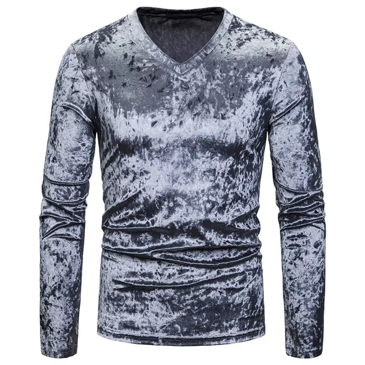 T-shirt en velours à col en V pour homme, logo personnalisé de haute qualité, tissu en coton 100 %, style décontracté tendance, imprimé graphique