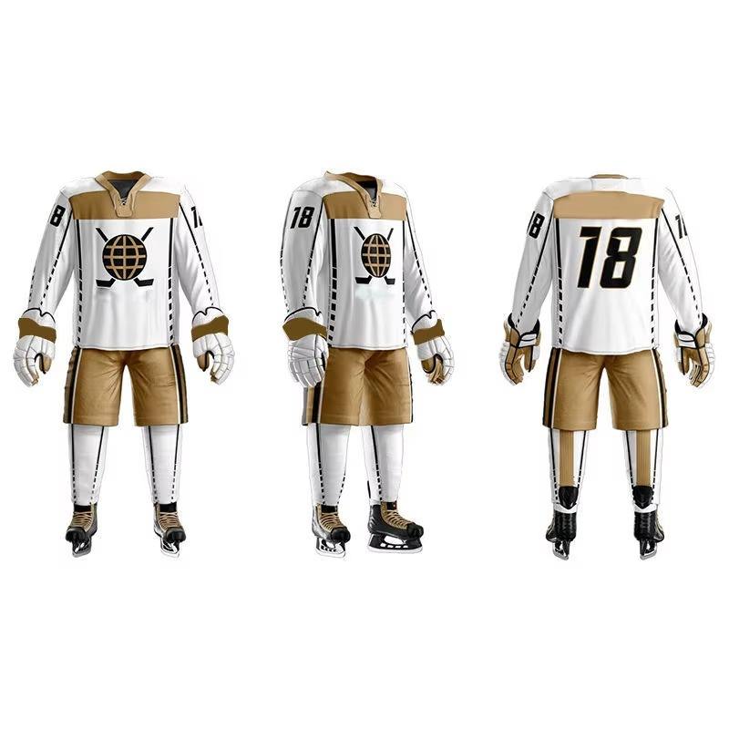 Maillot de hockey sur glace personnalisé en polyester de haute qualité pour hommes, impression par sublimation, design gratuit, nom de l'équipe, ensemble de vêtements de sport à séchage rapide