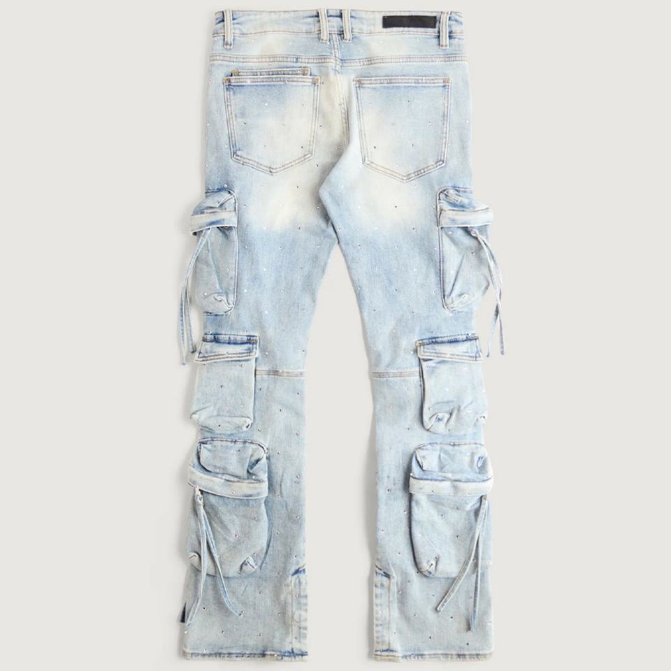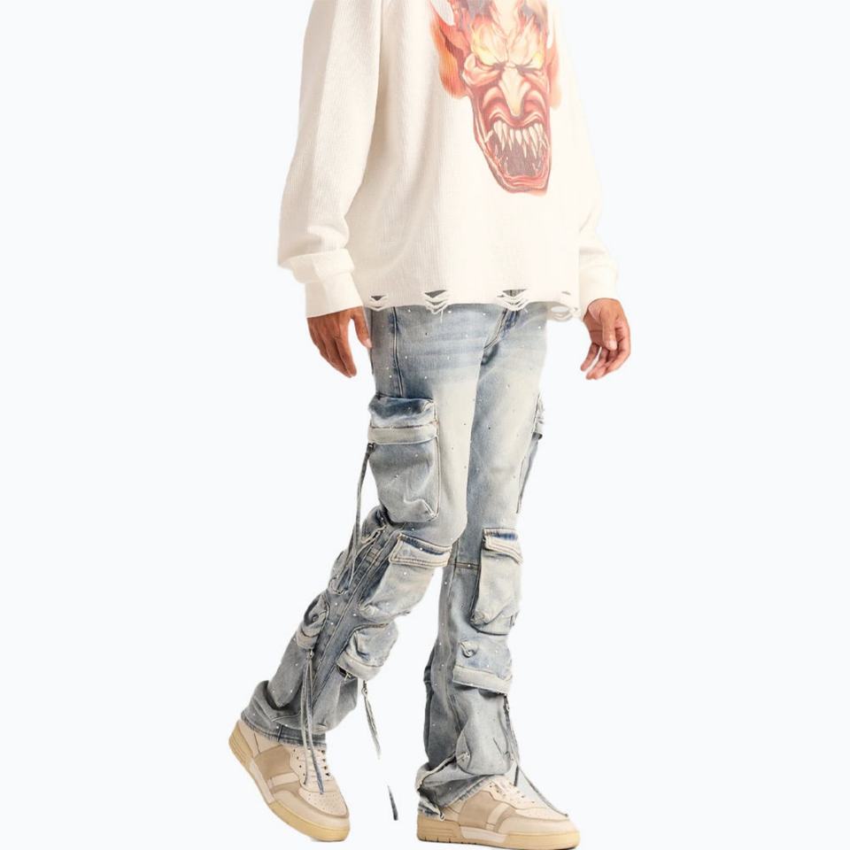 Jeans cargo à cordon de serrage de haute qualité pour homme, lavage personnalisé, design déchiré multi-poches pour le streetwear d'hiver