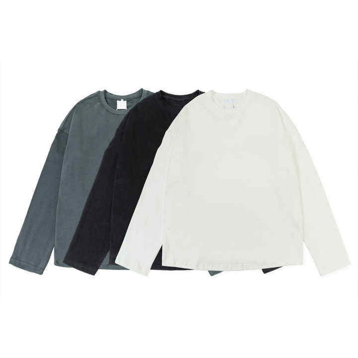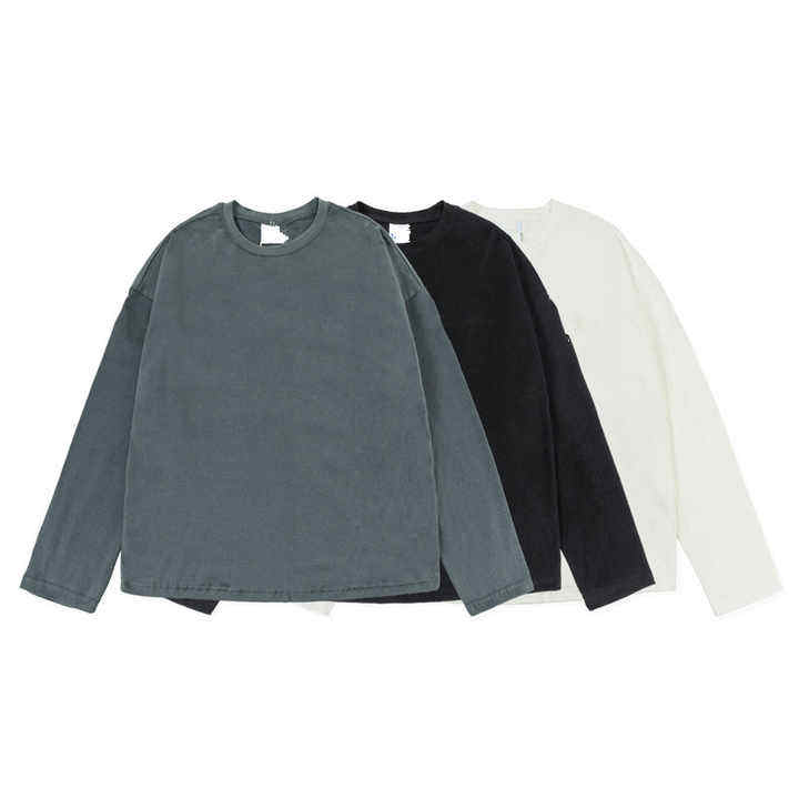 T-shirt vintage à manches longues grande taille de haute qualité pour homme Vêtements hip hop en coton uni avec logo personnalisé 100% coton à motif uni