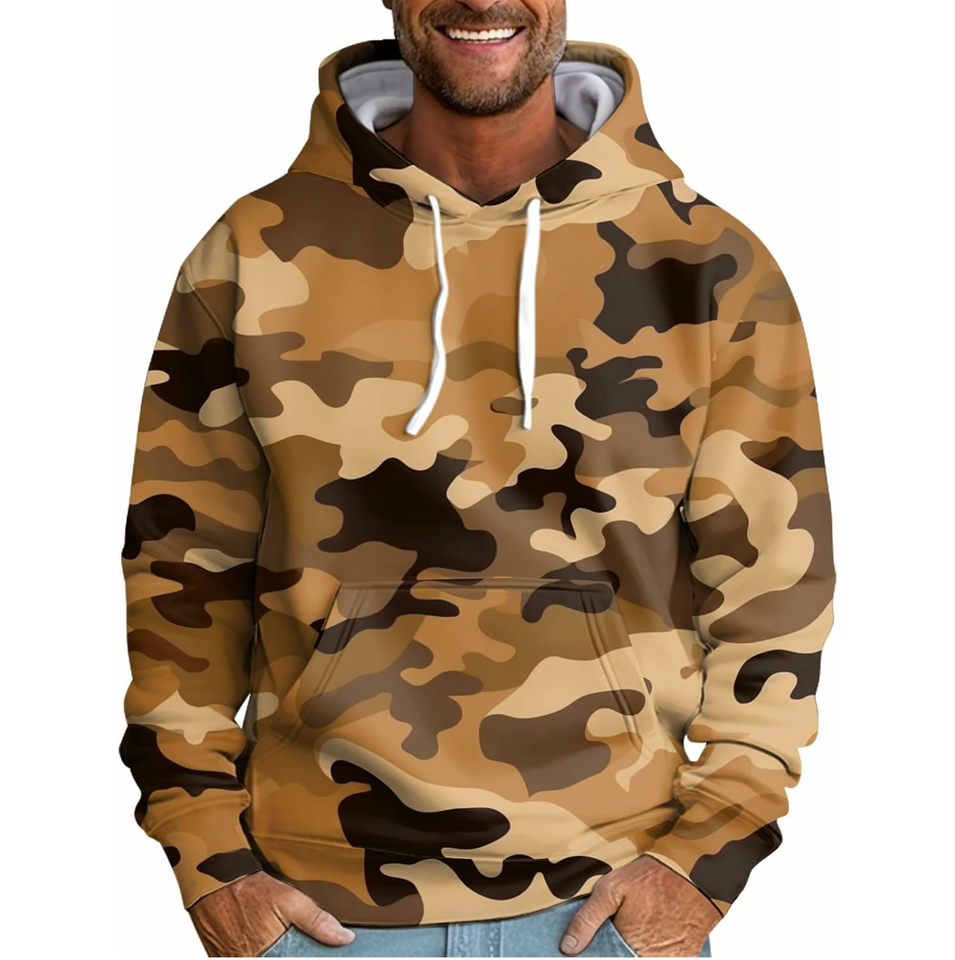 Men's High Quality Winter Warm Camouflage Oversized Streetwear Hoodie 100% Breathable Cotton Fleece Lining Solid Pattern