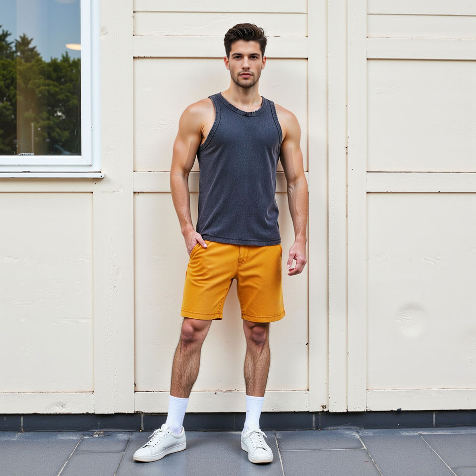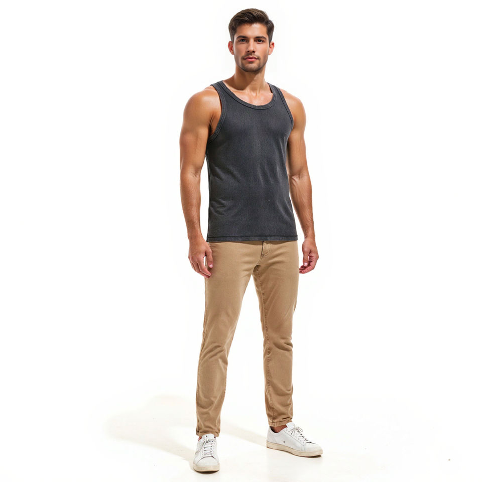 Débardeur côtelé délavé style urbain pour homme, 100% coton, 315G, coupe décontractée