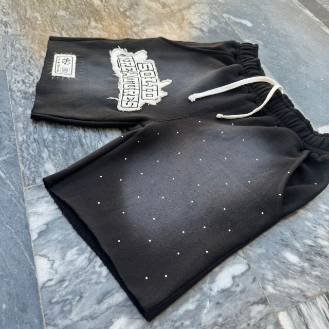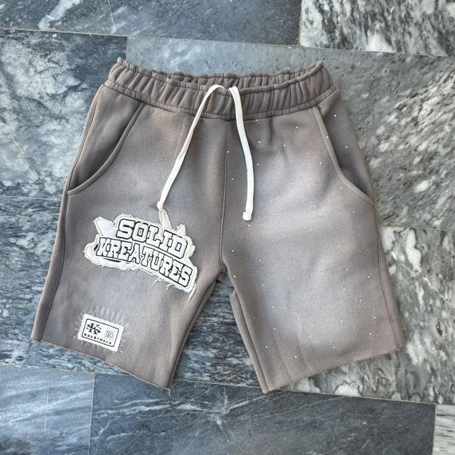Short de jogging en coton éponge pour homme, style street, avec broderie en strass et décoloration au soleil, vente en gros de shorts de jogging en coton