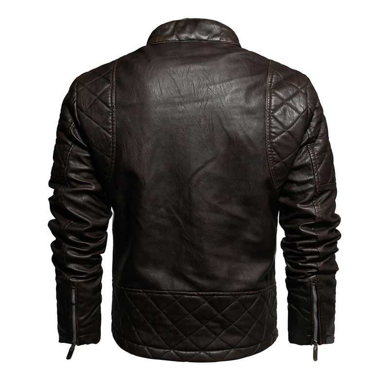 Veste d'hiver coupe-vent décontractée coupe-vent pour hommes en cuir PU col montant doublure polaire pour