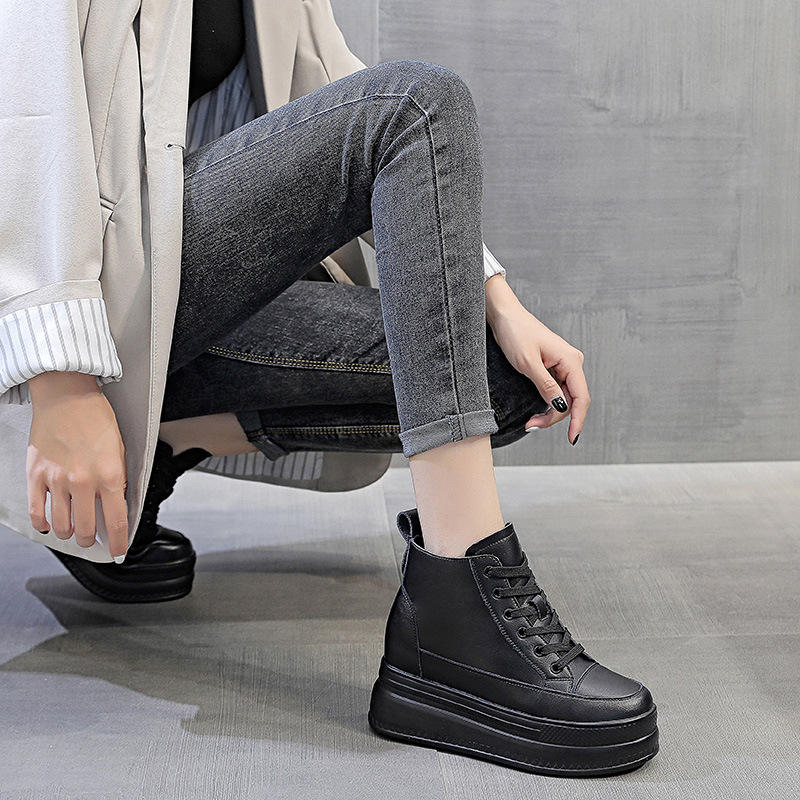 Men's High Top Business Casual Derby Shoes Goodyear Handmade Toe Genuine Leather Mesh Thick Sole Breathable Height Increasing