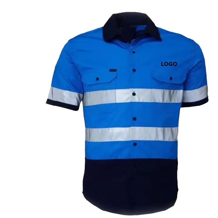 Chemise de travail à manches courtes haute visibilité pour hommes, vêtements de sécurité réfléchissants personnalisés, respirant, bicolore, fluorescent