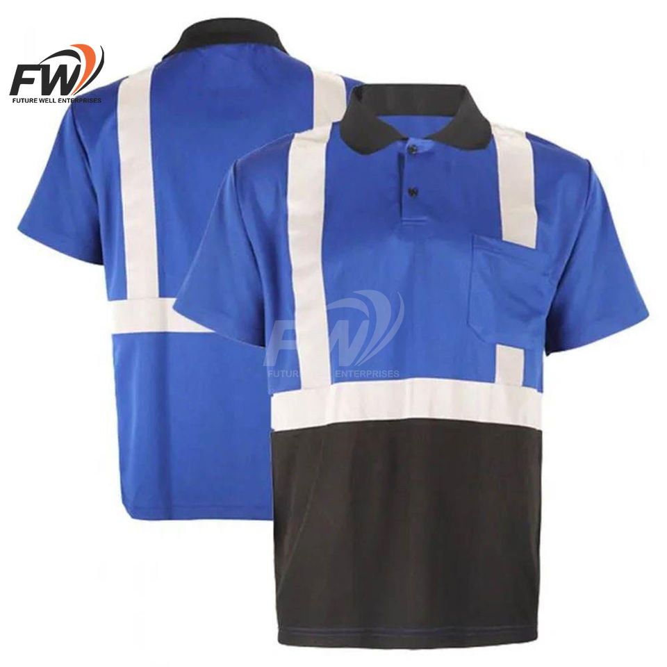 Chemises de travail haute visibilité pour hommes, polo en polyester avec bandes réfléchissantes, caractéristiques fluorescentes et thermiques