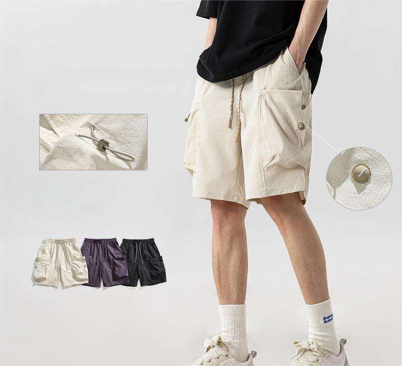 Shorts de travail multi-poches taille haute pour hommes, vêtements décontractés d'été respirants, taille moyenne, fermeture à cordon, sports polyvalents
