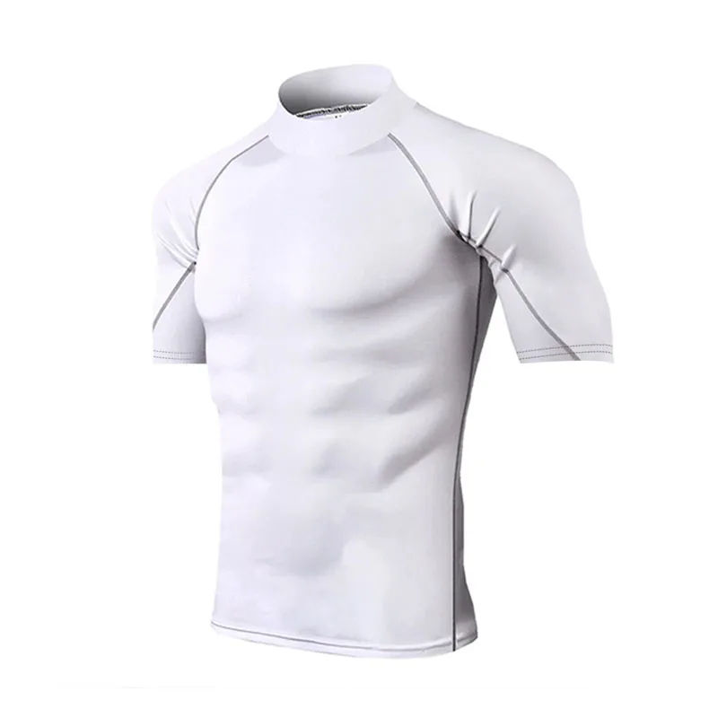 Haut de compression de sport taille haute pour hommes T-shirt de gymnastique à séchage rapide imprimé d'éruptions cutanées à manches courtes élastiques pour le printemps de musculation