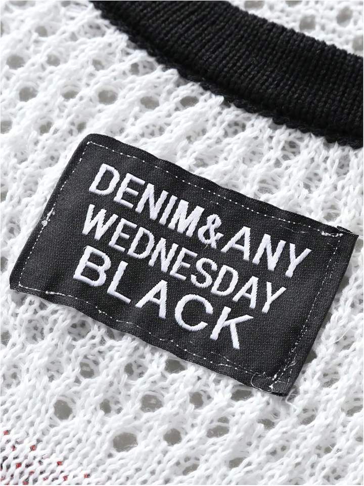 Men's Hollow Out Crochet Knit Top Letter Graphic Crew Neck Short Sleeve Jersey T Shirt