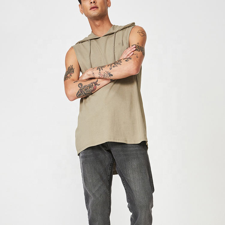 Haut de gymnastique à capuche pour hommes Débardeur à col profond Gilet de sport Vêtements de sport Vente de conception OEM sur débardeurs à capuche pour hommes