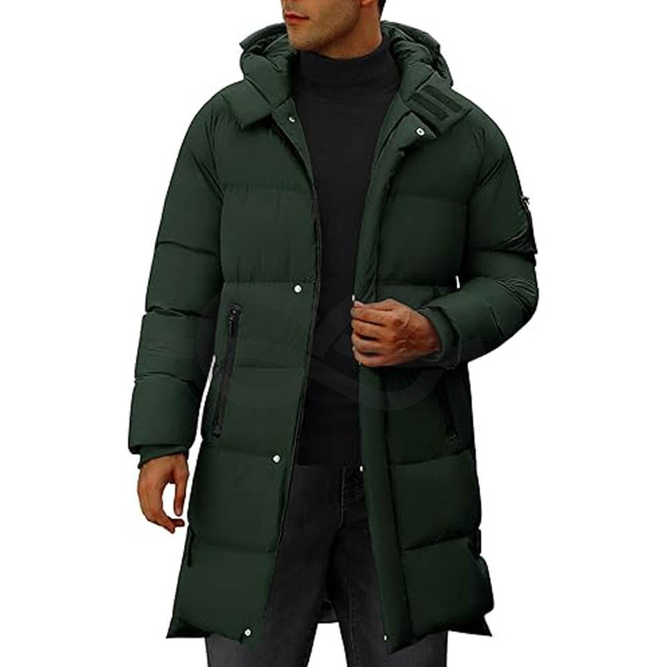 Veste matelassée à capuche pour hommes, manteau matelassé long et chaud pour l'hiver, coupe-vent, fermeture éclair complète, vêtements d'extérieur épais avec 4 poches par temps froid