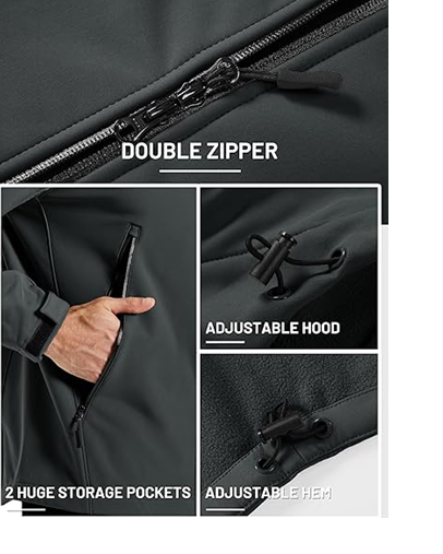 Veste Softshell à Capuche pour Homme Imperméable Doublée en Polaire Veste de Pluie Légère Coupe-Vent Manteau d'Hiver Randonnée en Plein Air