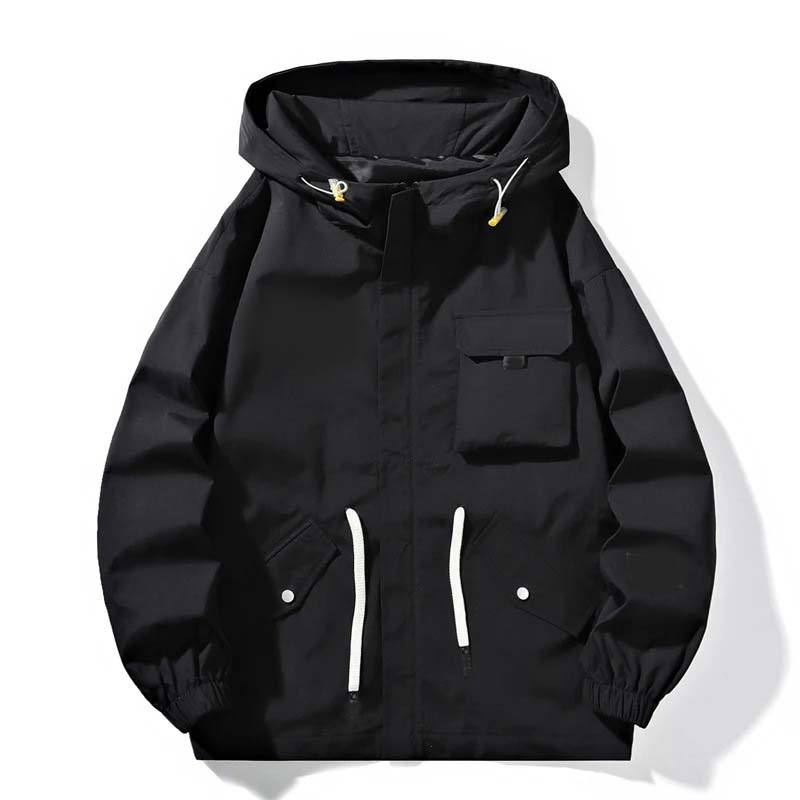 Veste bomber softshell imperméable à capuche pour homme Respirante Confortable Séchage rapide Polyester Col montant Fermeture éclair Respirante