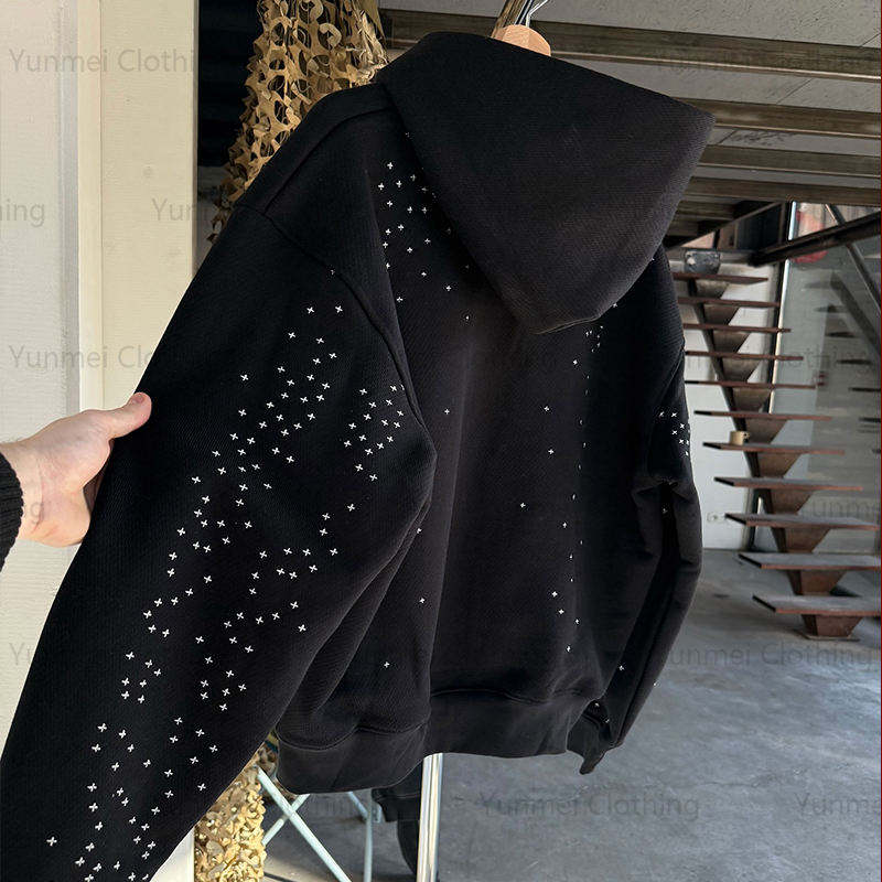 Sweats à capuche pour hommes avec strass fermeture éclair complète 100% coton impression surdimensionnée sweats à capuche personnalisés sweat à capuche lourd pour hommes