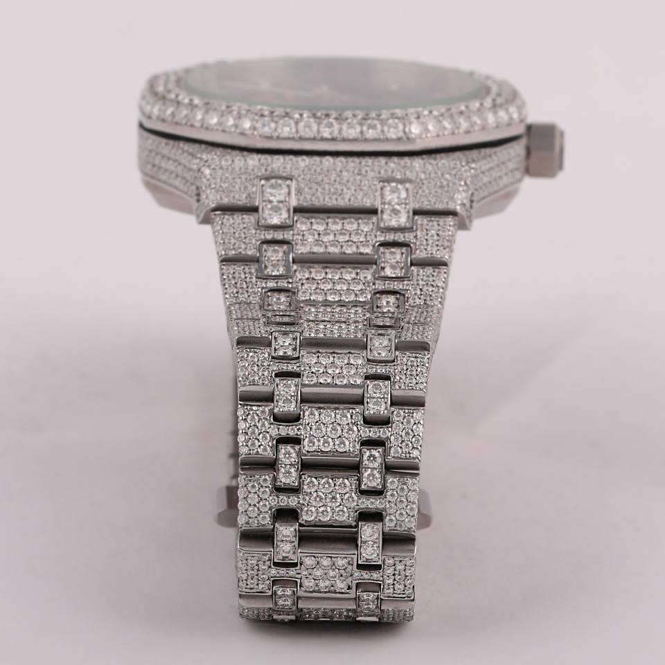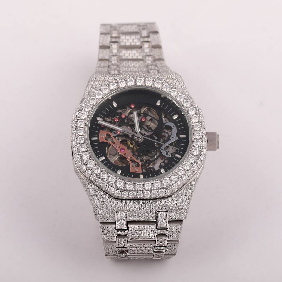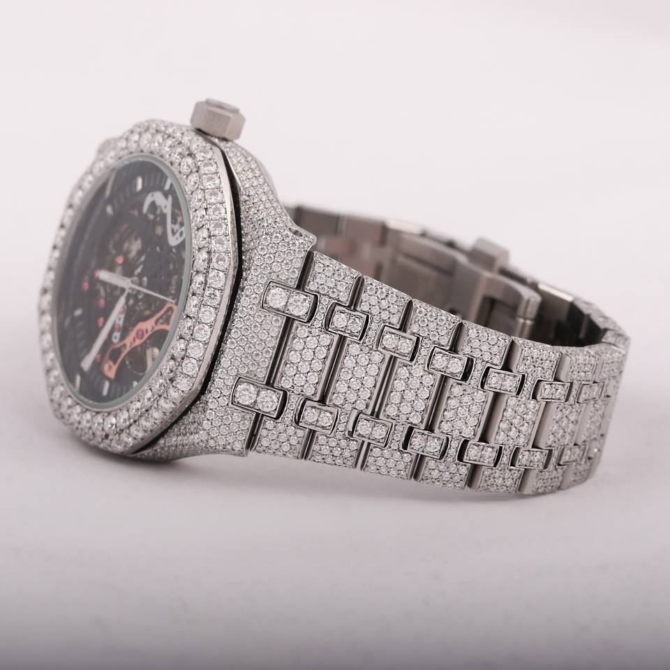 Montre en acier inoxydable pour homme de la collection Hip Hop Moissanite glacée étincelante avec fenêtre en diamant taille brillant 41mm Affaires
