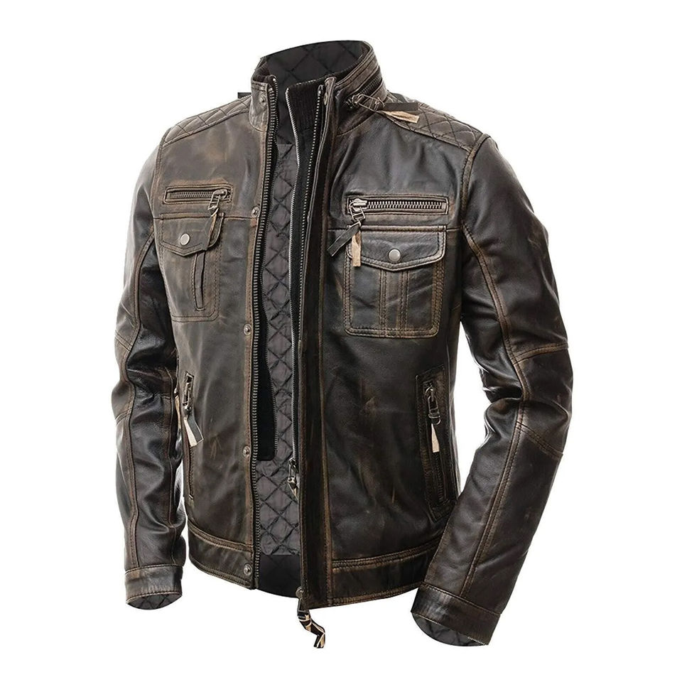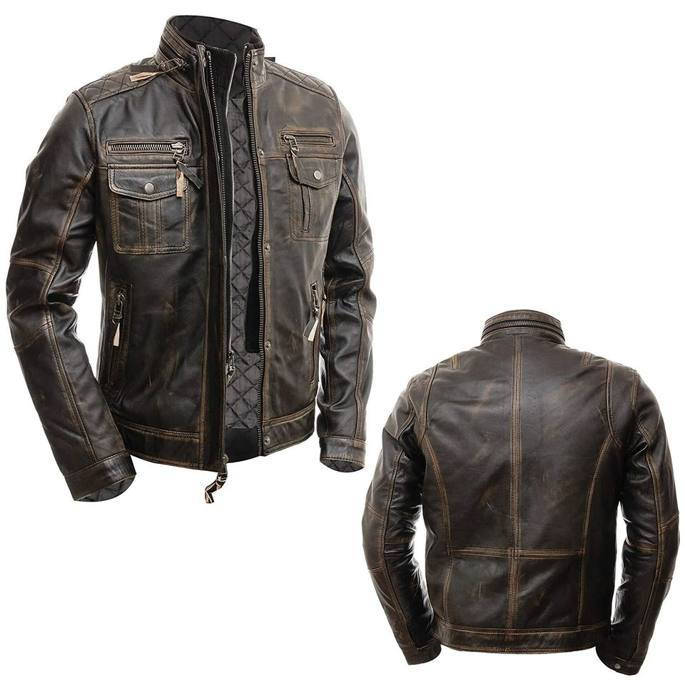 Men's Jackets Custom Logo And Design Men Motorcycle Biker Vintage Distressed Brown Cafe Racer Real Leather jacket for men