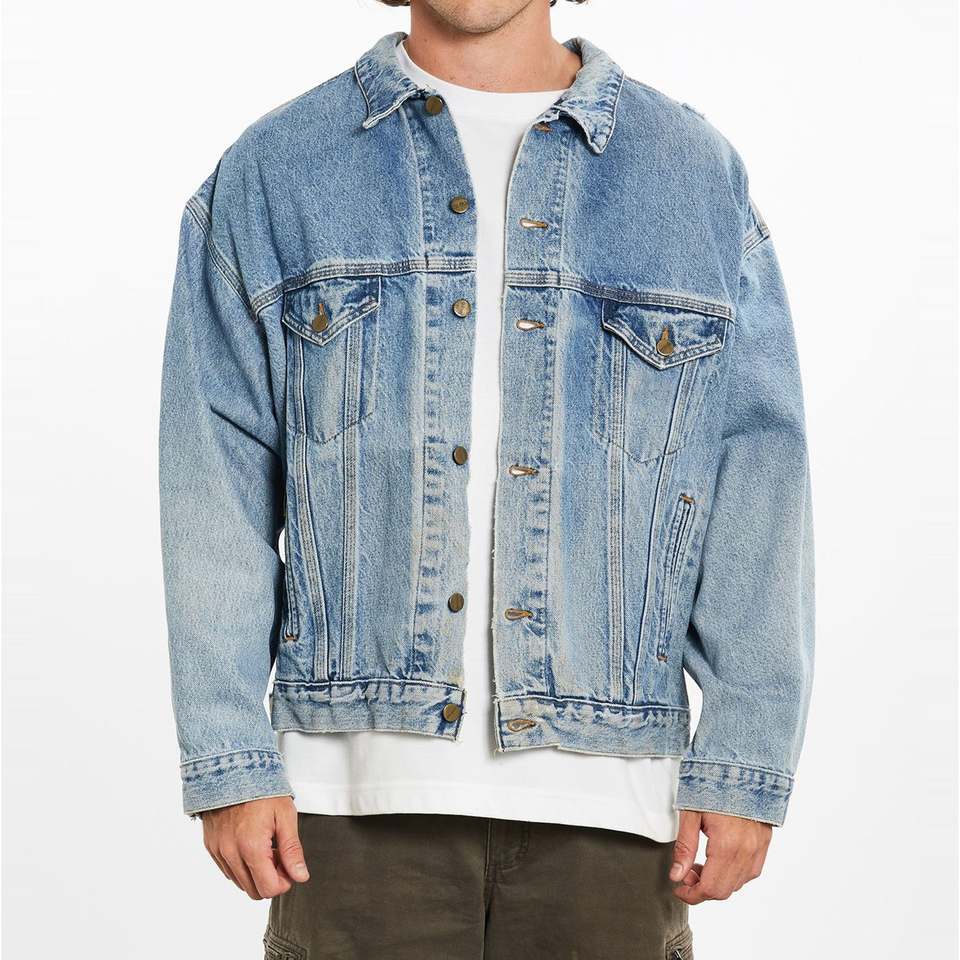 Blouson en jean à capuche pour homme, style motard sportif, toile délavée, coupe-vent, logo personnalisé sur le devant, OEM, haute qualité