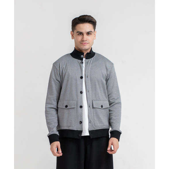 Blouson bomber jacquard noir/marron pour homme, hiver