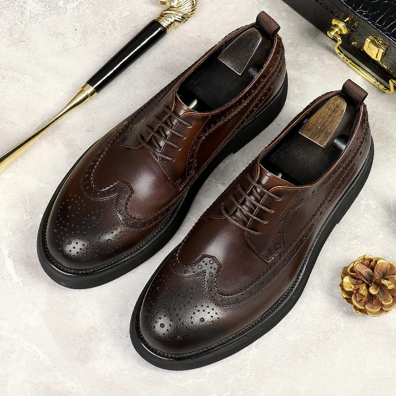 Chaussures décontractées multifonctionnelles de style coréen pour hommes, légères et à semelle épaisse en cuir de vache