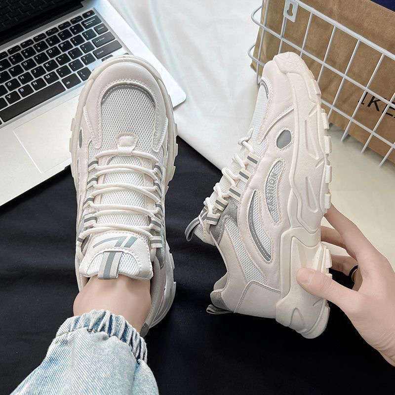 Baskets à lacets pour hommes Printemps 2025 Nouveauté Chaussures décontractées style 'Dad Shoes' Été Respirantes en maille Rehaussantes Blanches