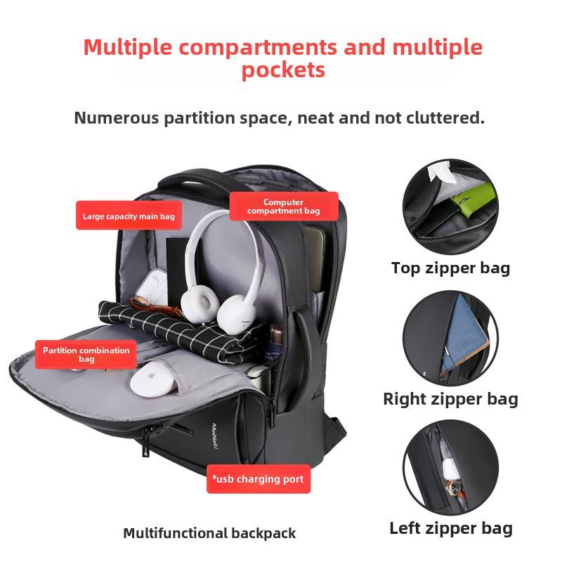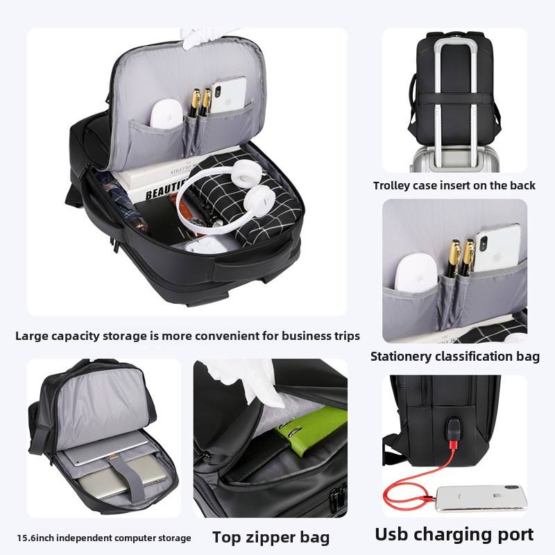 Sac à dos professionnel unisexe grande capacité étanche avec port USB, sac à dos simple à double épaule pour ordinateur portable en tissu Oxford 56-79L